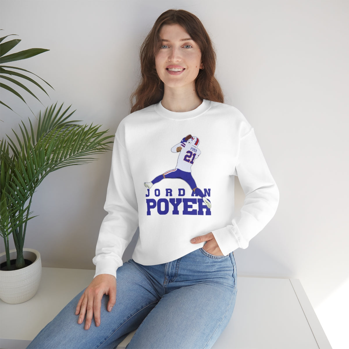 Ever dreamt of wrapping up in Jordan Poyer's on-field brilliance on a chilly game day? Look no further; introducing our "Jordan Poyer Crewneck Sweatshirt" - turning those gridiron dreams into cozy reality!